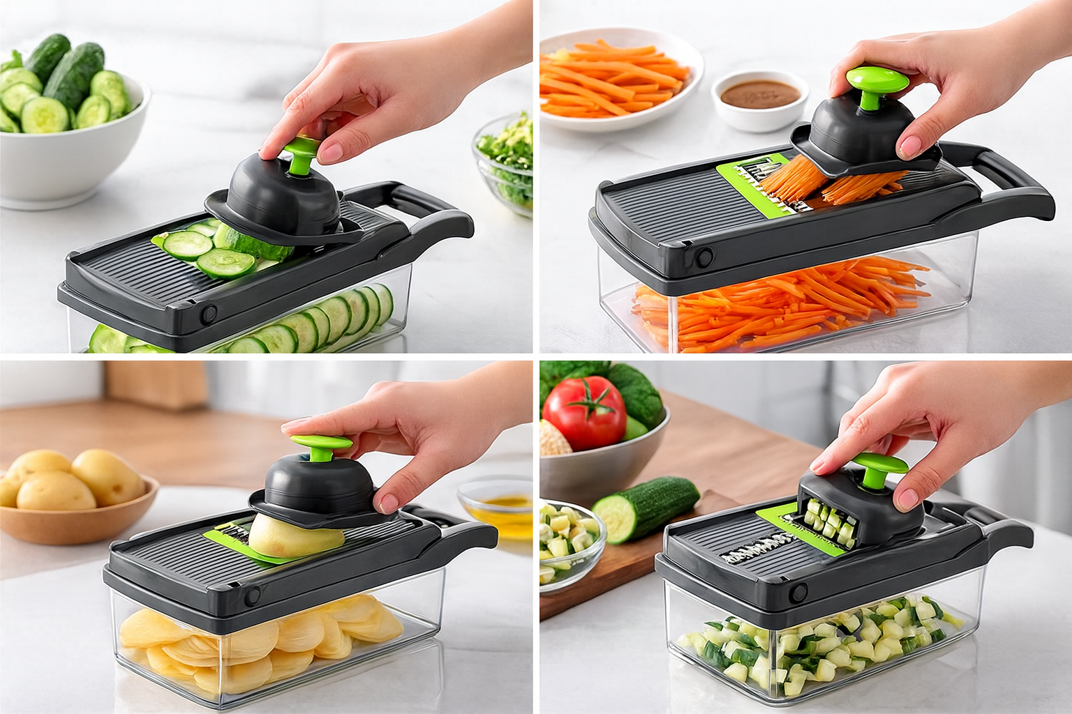 - Conçu pour les cuisiniers avertis, il maîtrise julienne, brunoise, lamelles fines et coupes épaisses avec une précision remarquable.