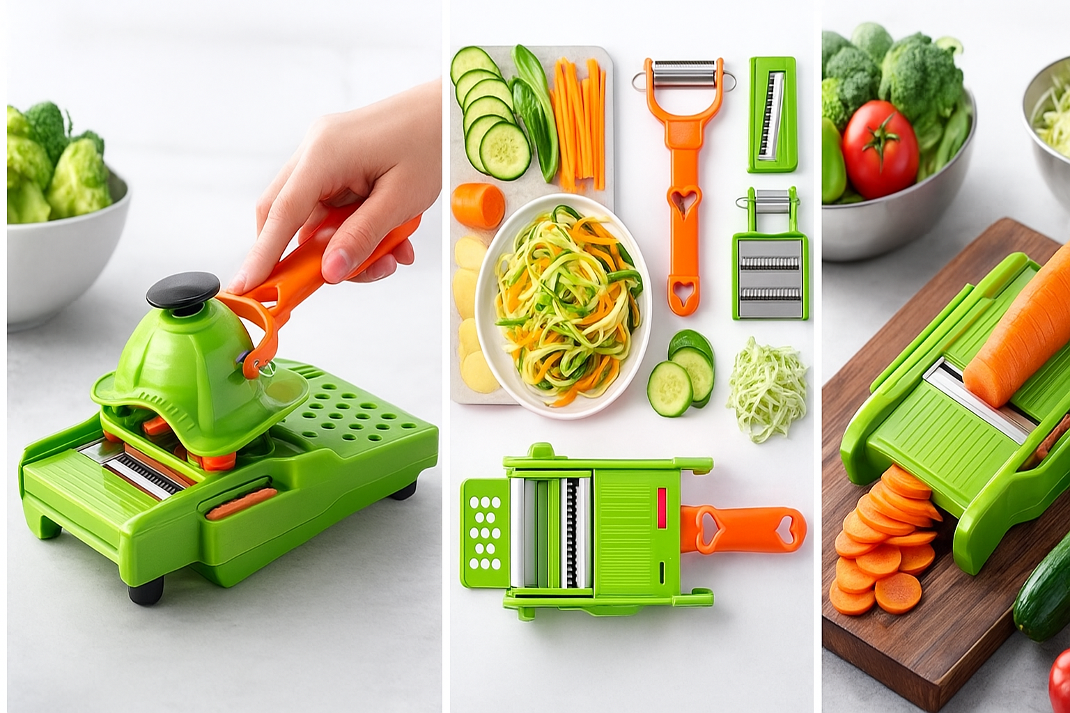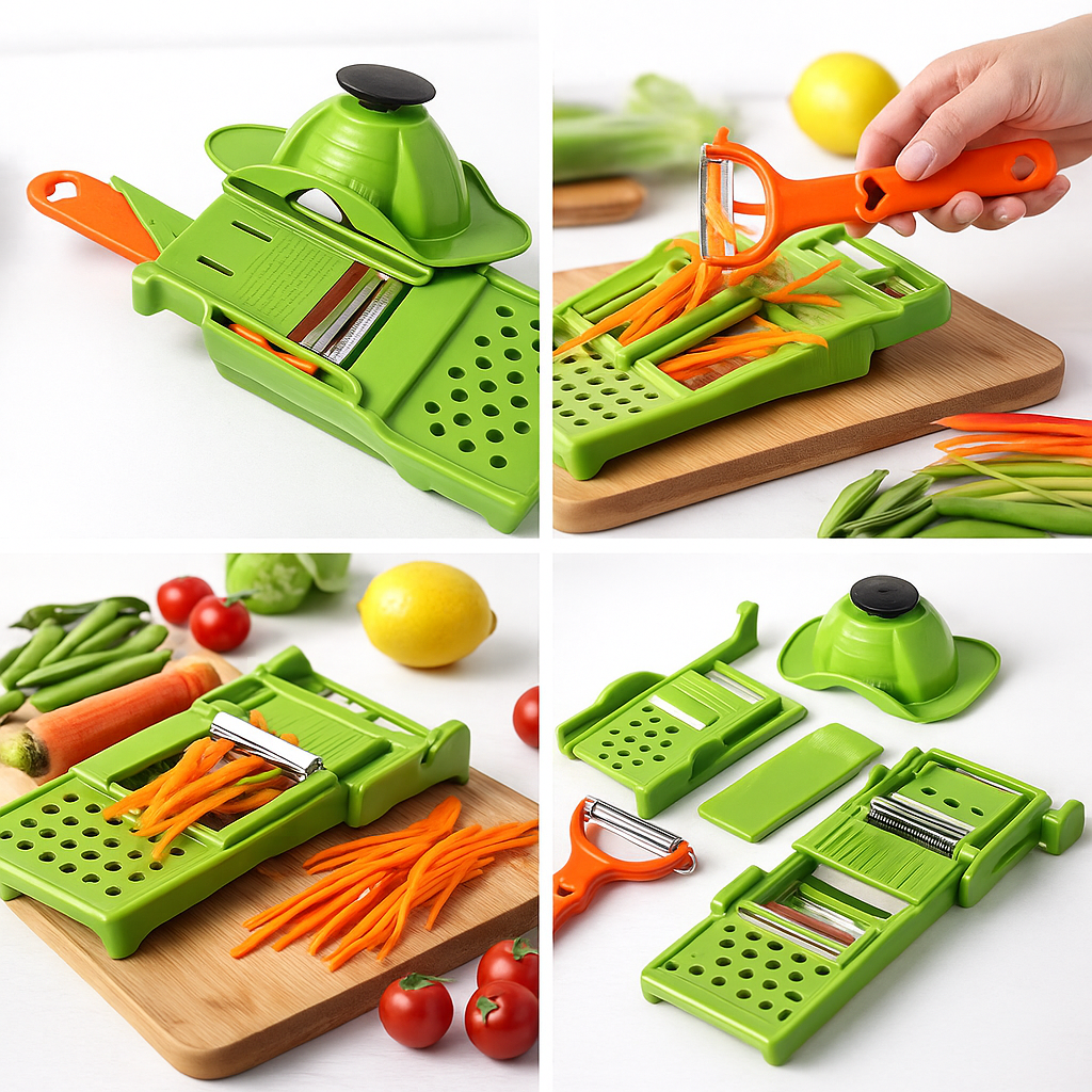 - L'éplucheur magique 3 en 1 combine trois fonctionnalités essentielles en un seul outil : éplucher, dénoyauter et trancher avec précision.